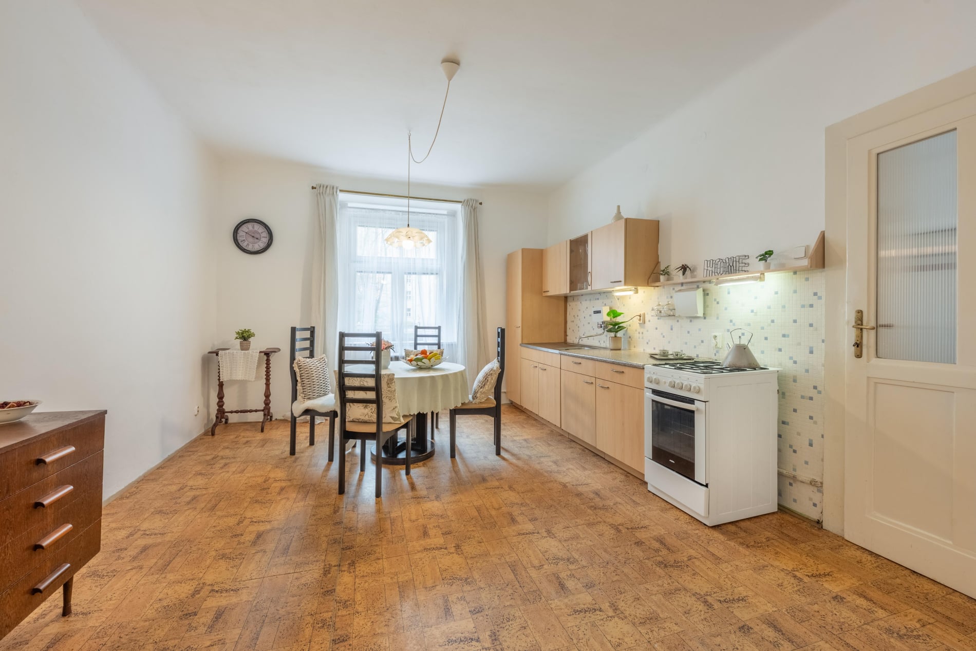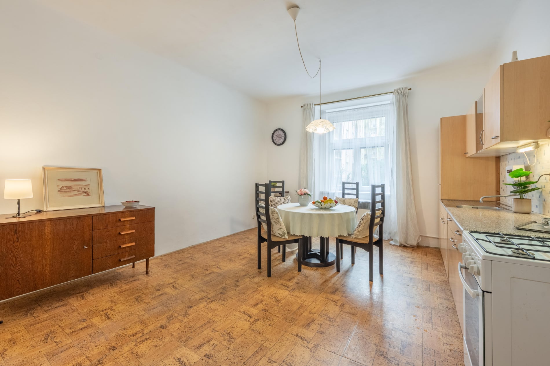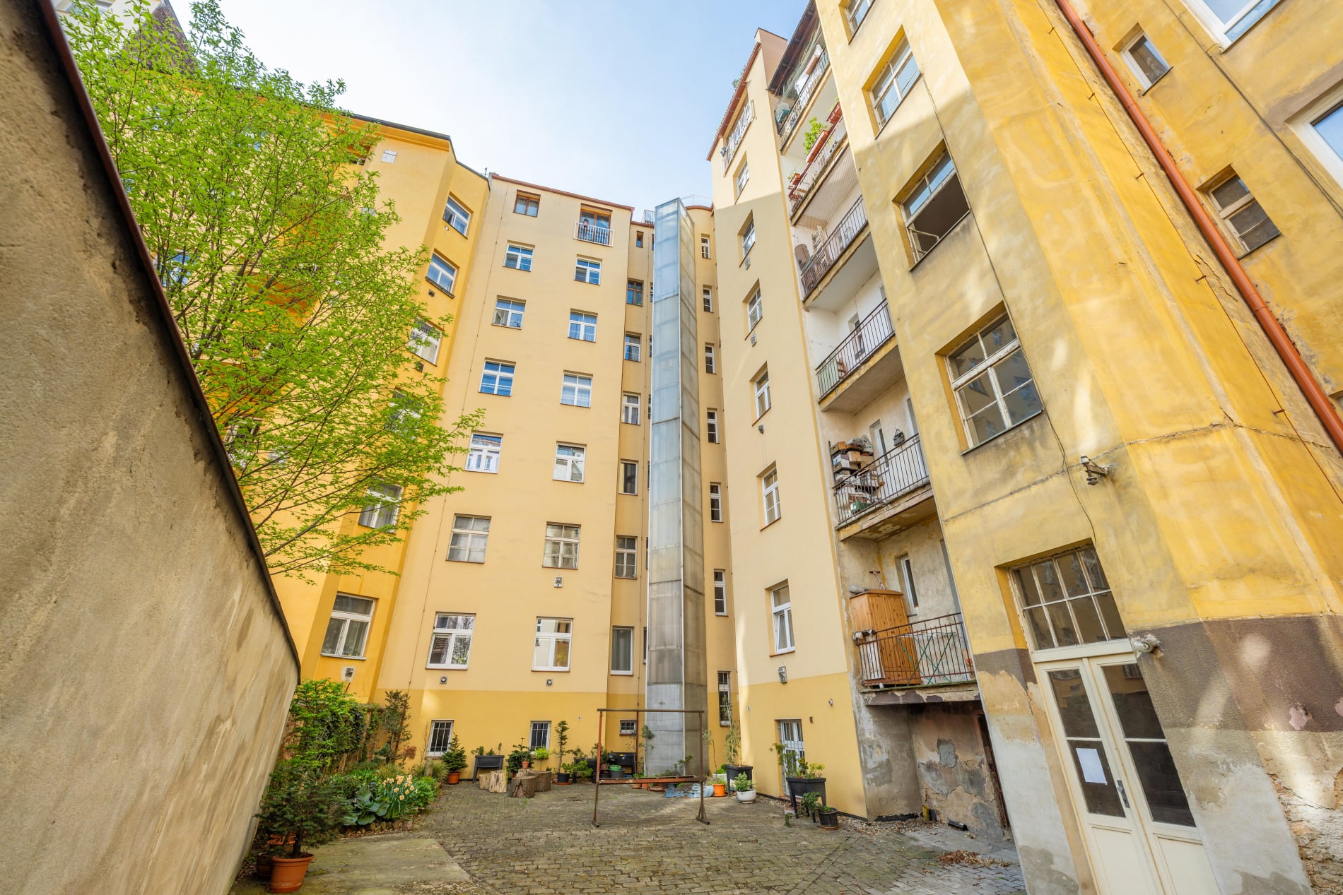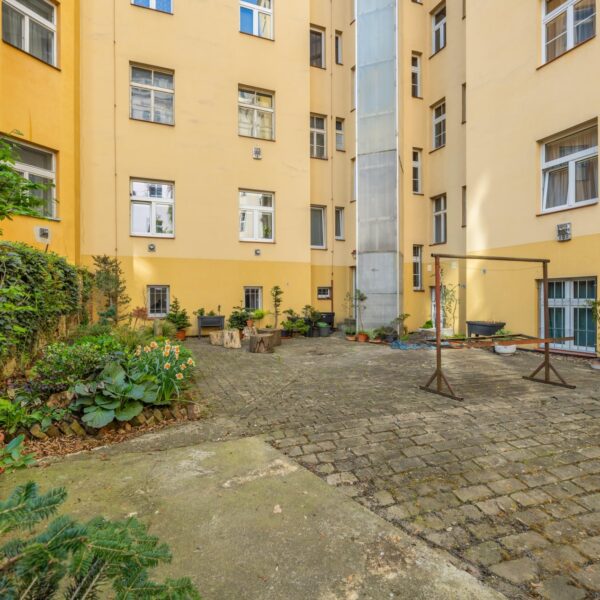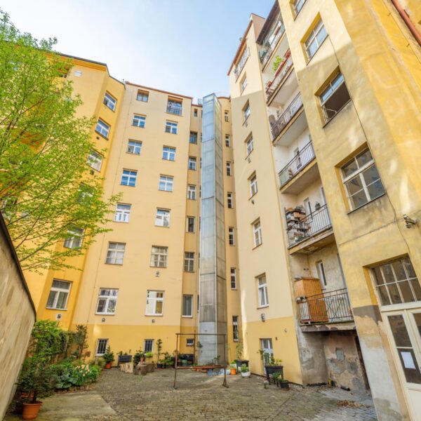 V zastoupení majitele Vám nabízím pěkný byt v krásně opraveném domě v horní části Žižkova – roh Žerotínova a Hájkova. Plocha bytu je 57m2 plus sklep 3 metry. Byt je ve zvýšeném přízemí s parapety dostatečně vysoko díky několika schoodům a svahu. Pod bytem je obydlený ateliér nikoliv sklepy. Dům má pěkný dvorek, který je obyvateli užíván a kde probíhají snahy o pěstování okrasné zeleně.