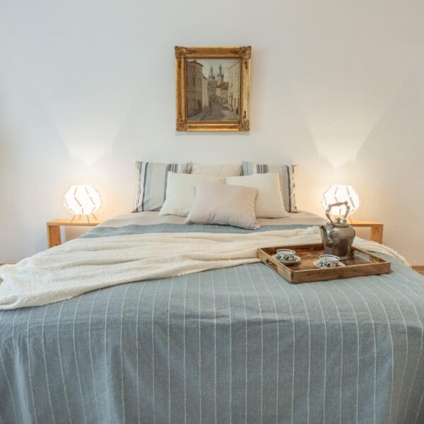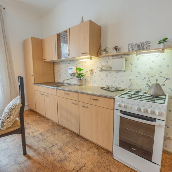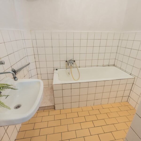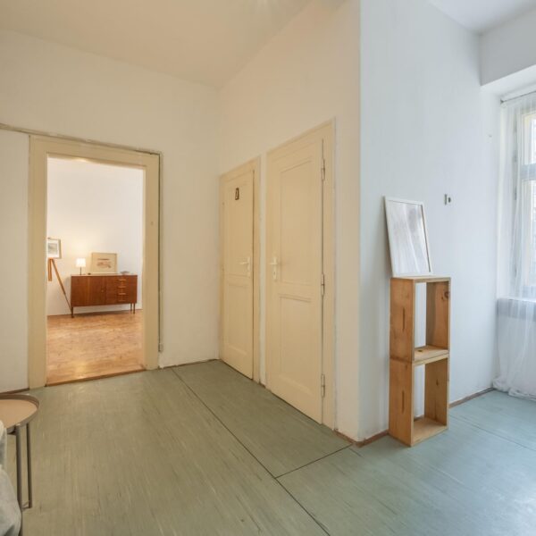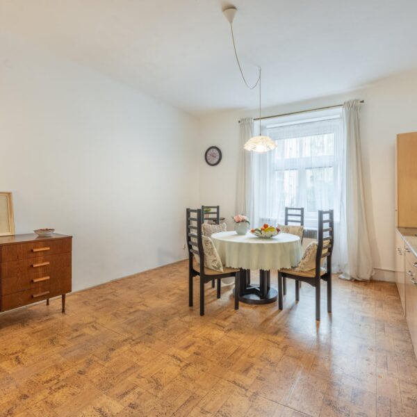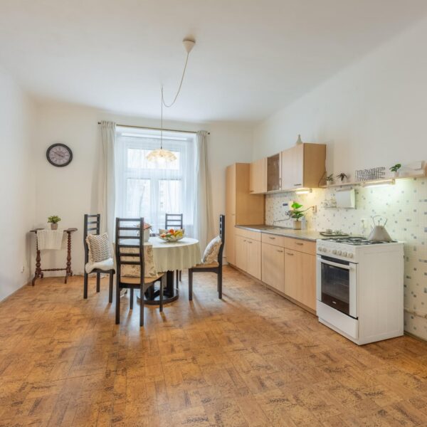 Byt je v původním stavu. Koupelna a záchod jsou z cca 70 tých let. WC samostatné. Pokoj je prostorný – 18 m2. Kuchyně ještě větší – 19,8 m2. Předsín je opravdu skvělá s vlastním oknem a je rozhodně možno do ní umístit kuchyň i sezení (odpady, voda – vše po ruce) – ta má 11 m2. V bytě jsou zároveň dvě komory – jedna standardní a jedna malá. Vytápění zajišťují topidla wav. Teplou vodu ohřívá bojler v koupelně a průtokový ohřívač v kuchyni. Vše je funkční, ale zralé na modernizaci.