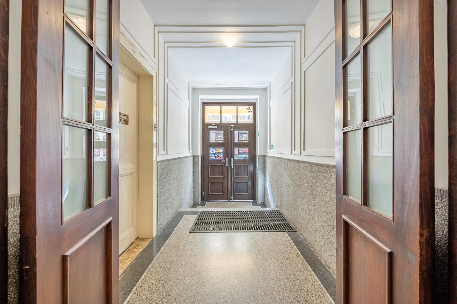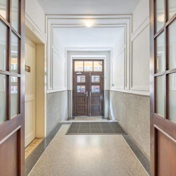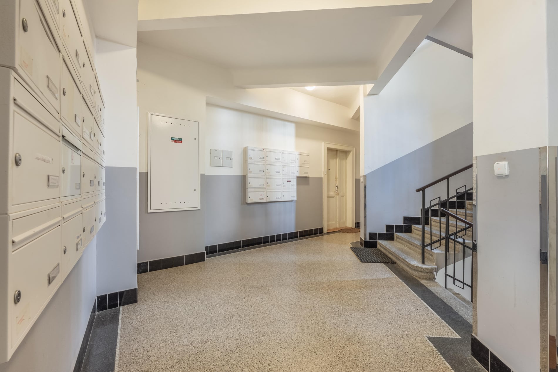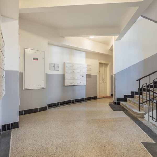 K bytu náleží sklep v suchém suterénu. Společné protory domu, sklepy, fasády, vše je opravené, udržované a čisté.