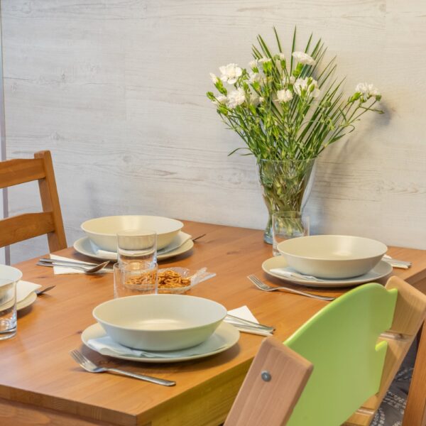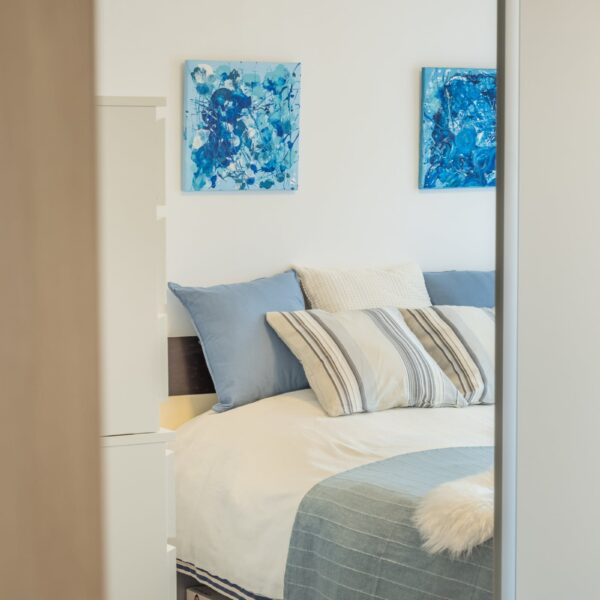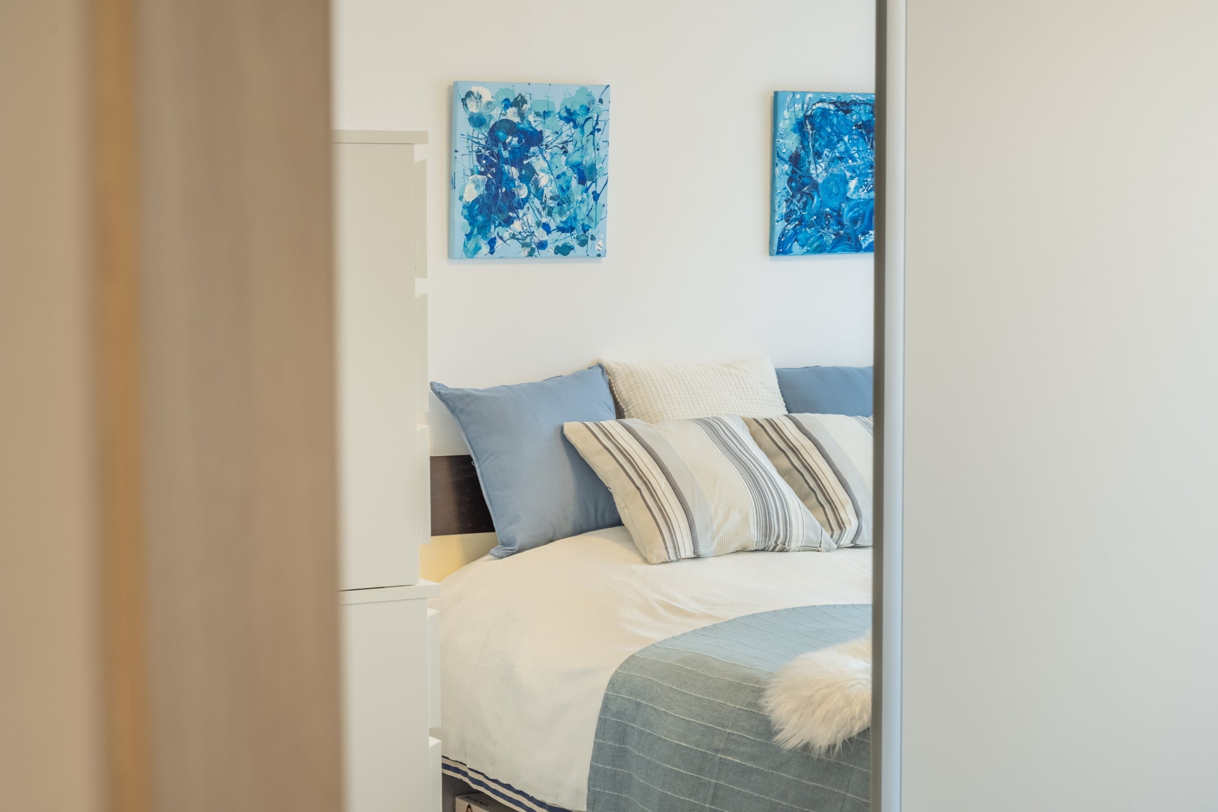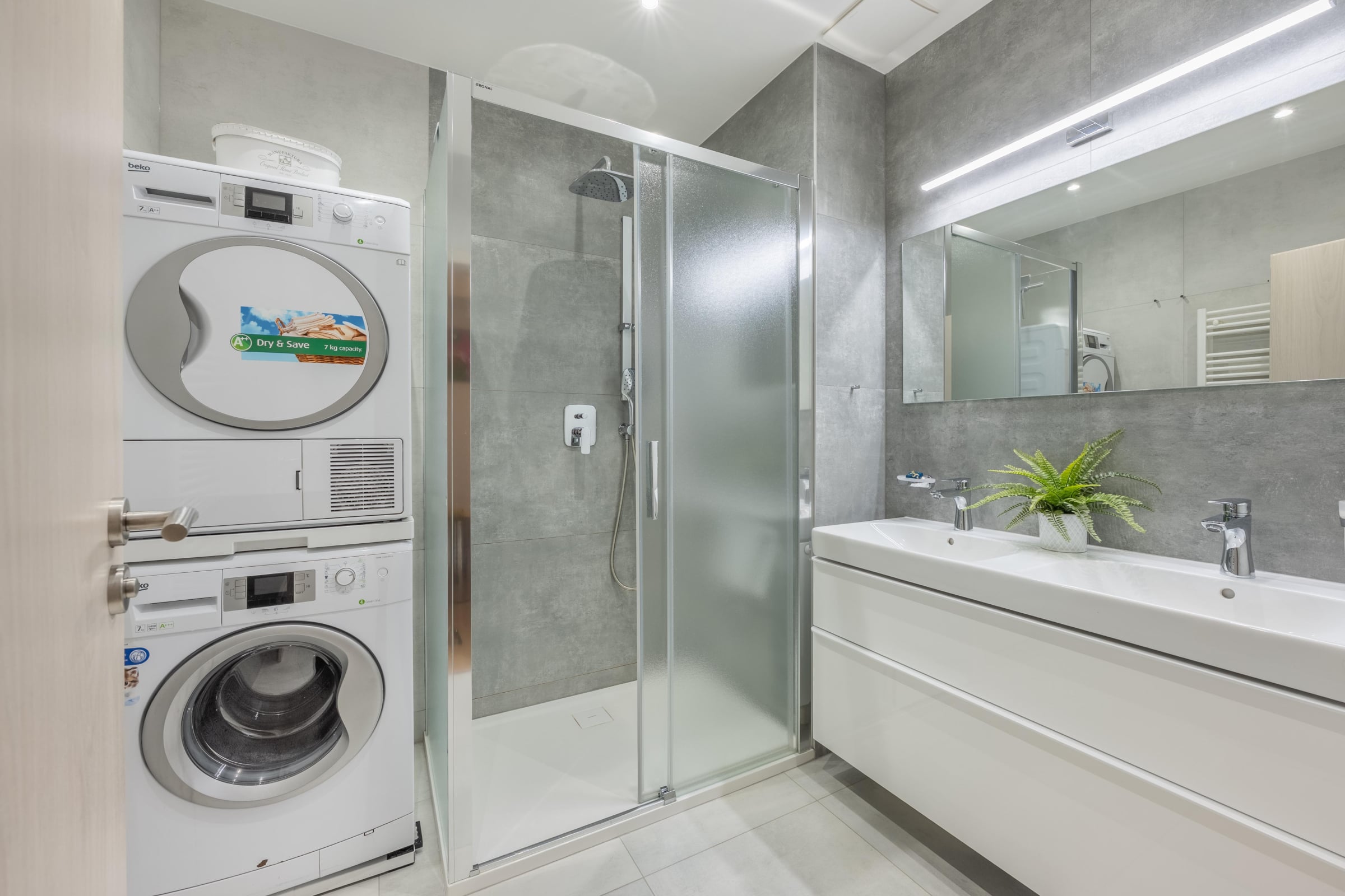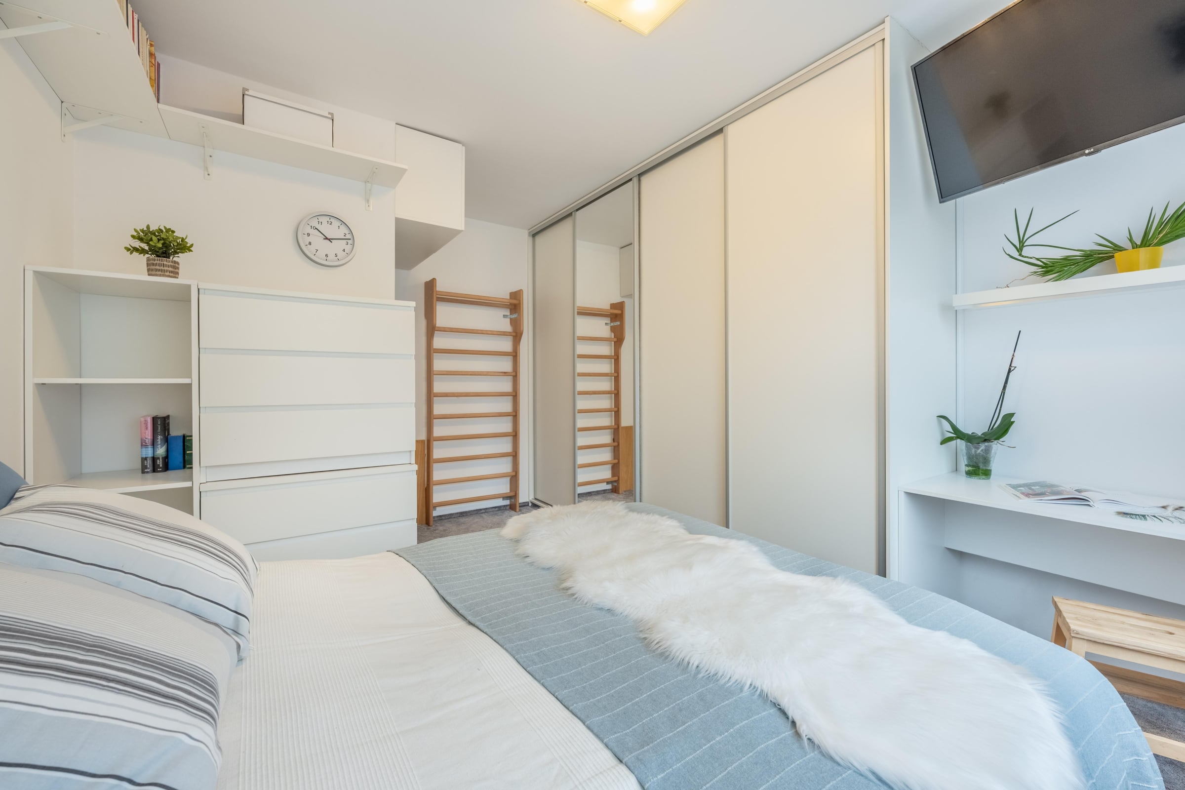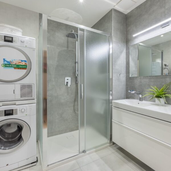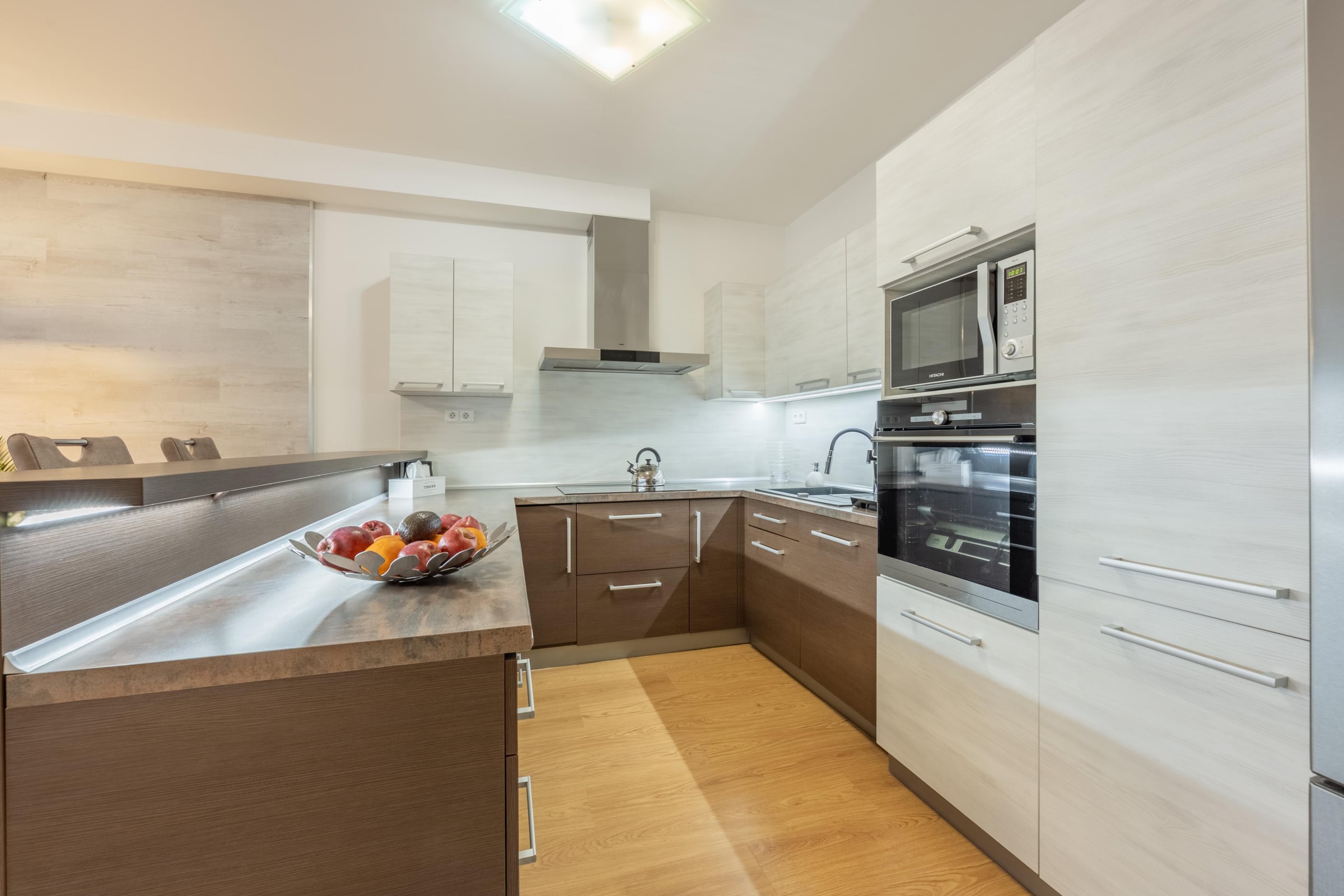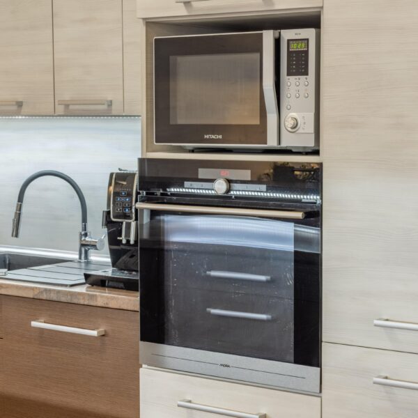 Jednotka je situována do 1. patra s výtahem, kdy pod bytem jsou garáže se zatepleným stropem. Okna mají orientaci na severovýchod a severozápad do zeleně a okolních domů. Byt je v perfektním stavu. Koupelna a záchod jsou po zdařilé rekonstrukci. Ložnice rodičů je aktuálně v nejmenším pokoji, kam se pohodlně vejde. Na prostorný dětský pokoj navazuje lodžie, o kterou je možno v teplých měsících pokoj v podstatě rozšířit. Obývací pokoj, kde je umístěn kuchyňský kout, je opravdu velkorysý – má plochu 38m2. V ložnici rodičů a předsíni jsou vestavěné skříně. V chodbě jsou i závěsné skříňky poskytující perfektní úložný prostor. Velikou výhodou tohoto bytu je zdařilá dispozice a solidní velikost i menšího pokoje, což u novostaveb není vždycky pravidlem.