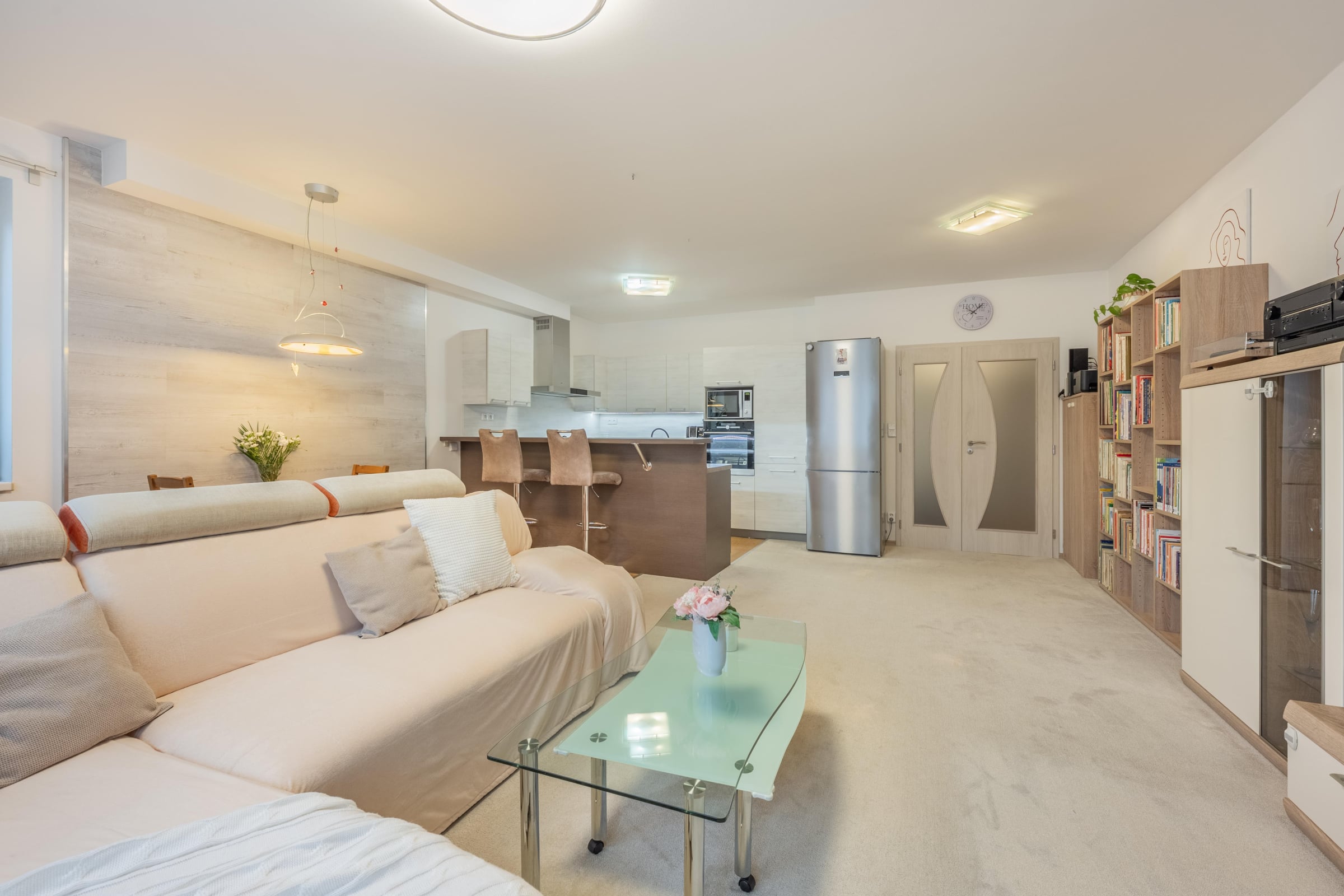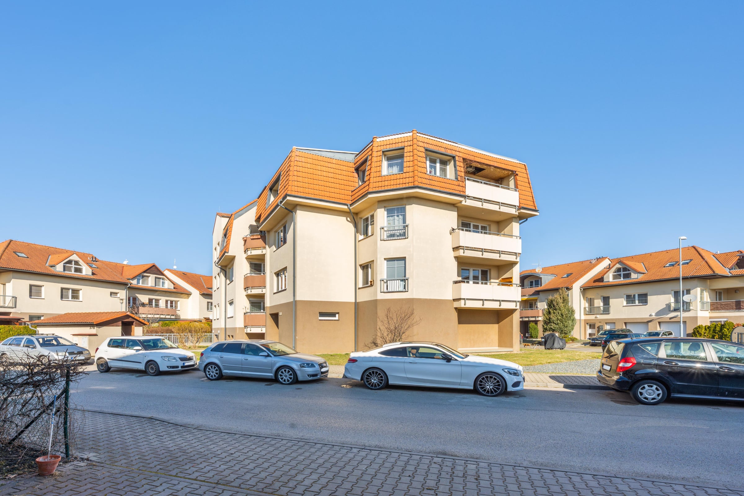 Nabízím Vám opravdu krásný byt 3+kk v rezidenční oblasti na hranici Prahy, hned za městkou částí Vinoř, v lokalitě s dostatečnou kapacitou ve školkách, zelení a bez hluku ze silnic. V obci je dokonce i škola a praktický lékař s volnou kapacitou. Byt je v domě z roku 2009 a navíc v něm loni proběhla rekonstrukce koupelny a byla osazeny nové obložky s dveřmi. Podlahová plocha bytu je 92,7m2 (z toho sklep 3,3m2) plus lodžie 6,6m2. V domě je i společná kolárna a menší dílna. Součástí bytu je garážové stání.