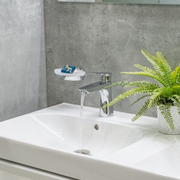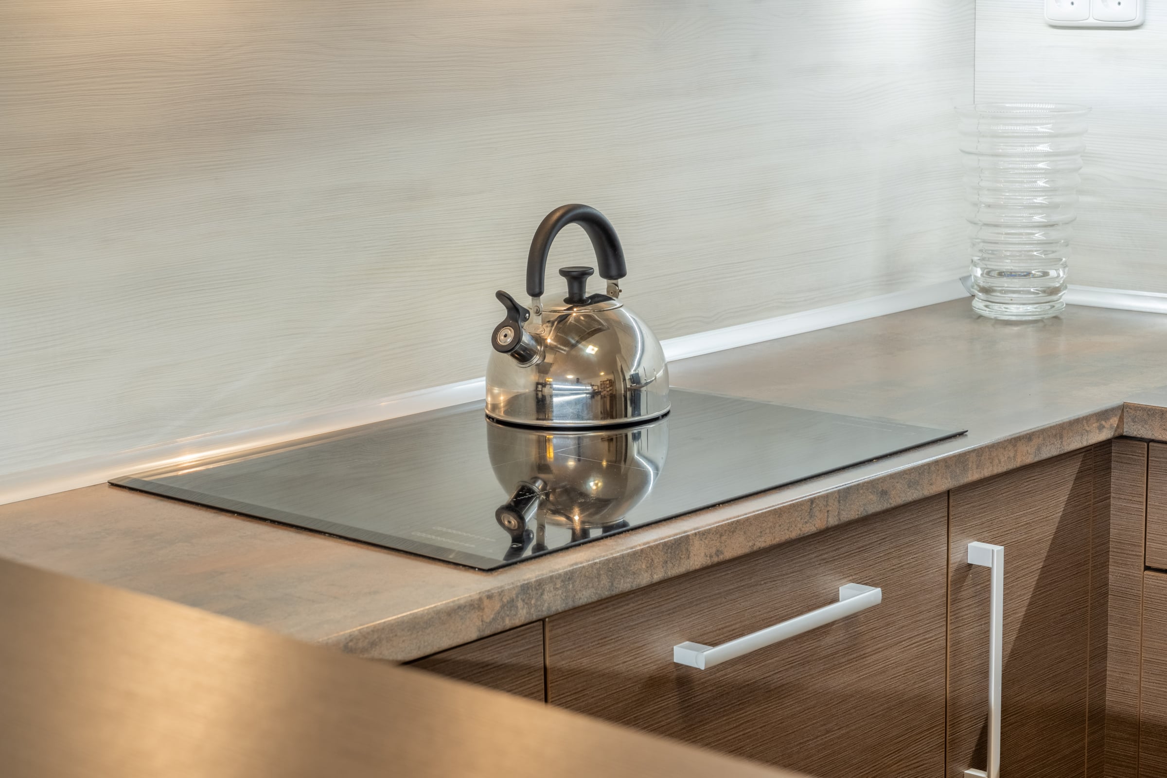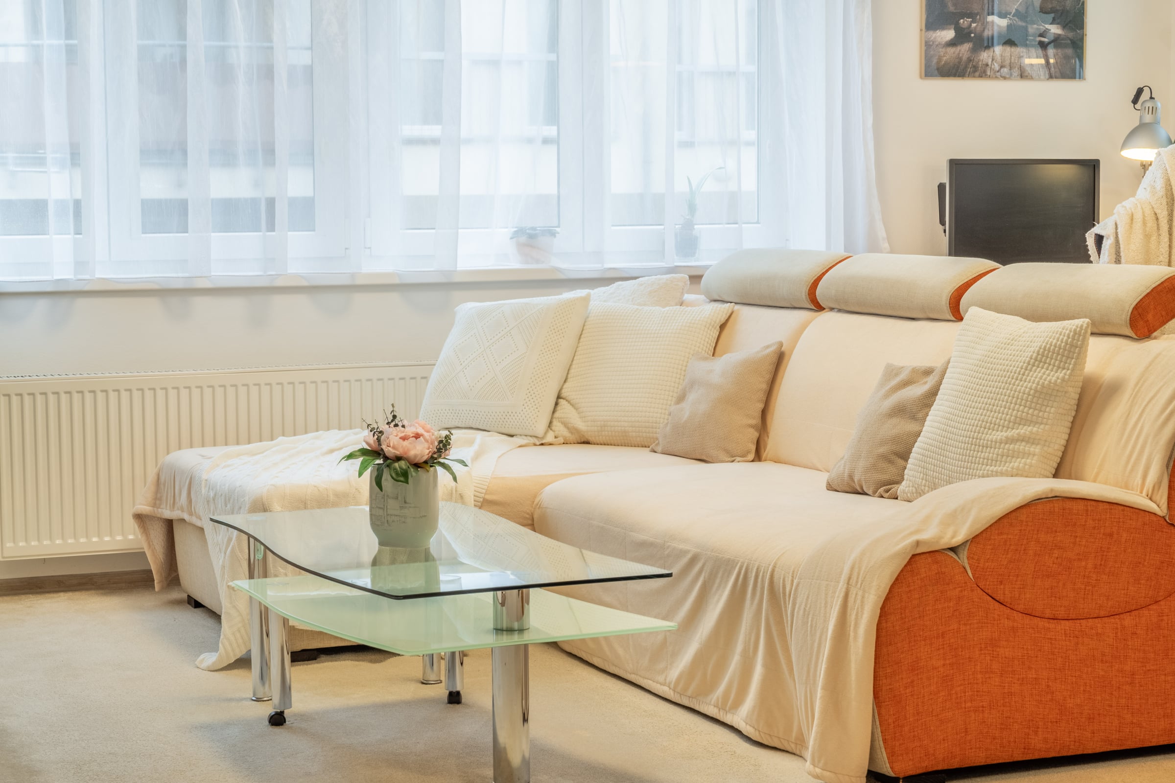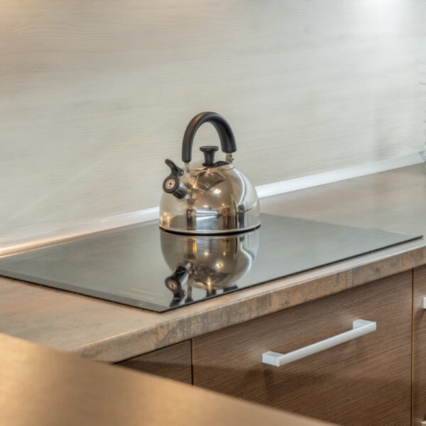 Vytápění a teplou vodu zajišťuje úsporný plynový kotel umístěný na wc.