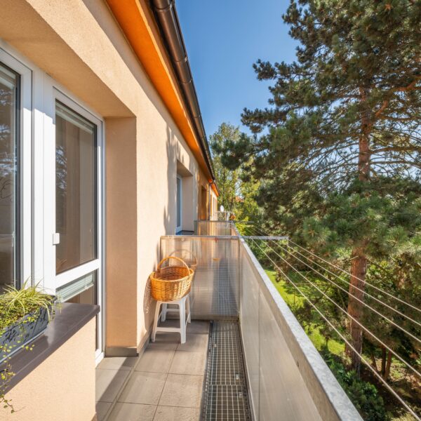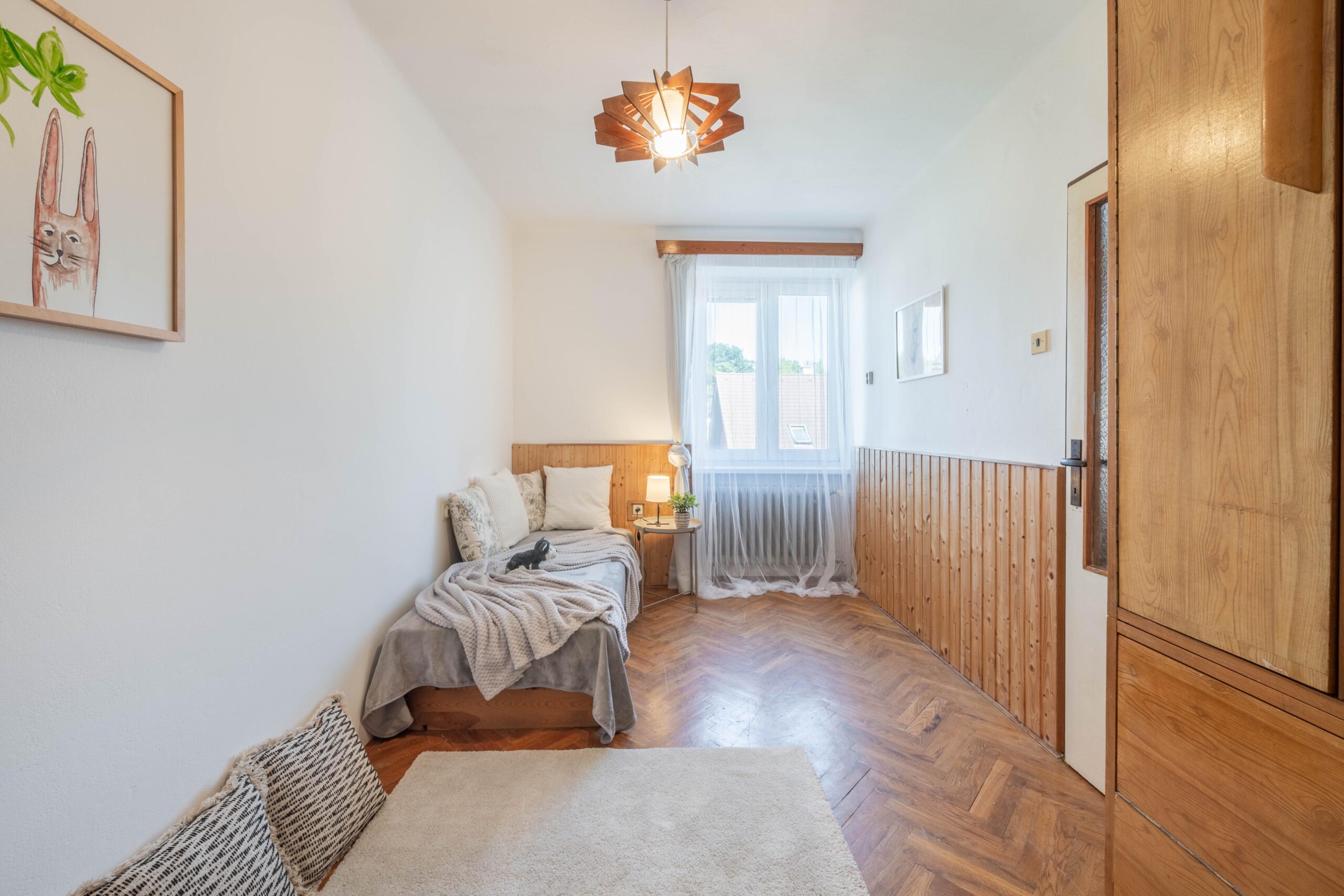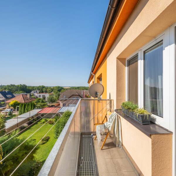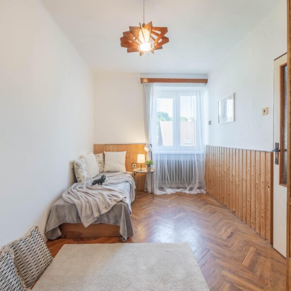 Z ložnice je vstup na balkón, který stejně jako celý dům je v perfektním stavu. K bytu také náleží prostorný sklep v suterénu, v kterém je místo třeba na kola, pneumatiky i dílnu.