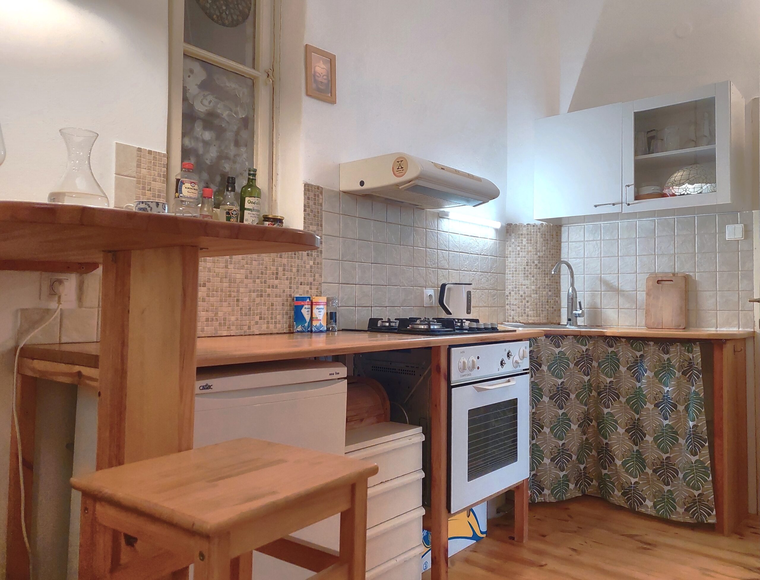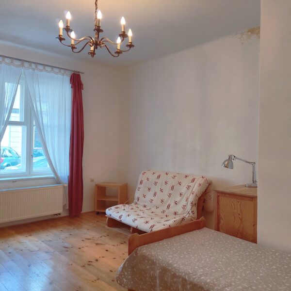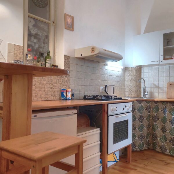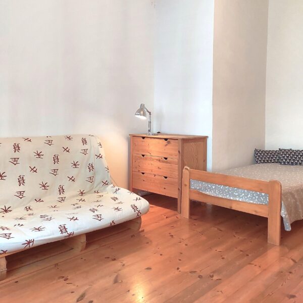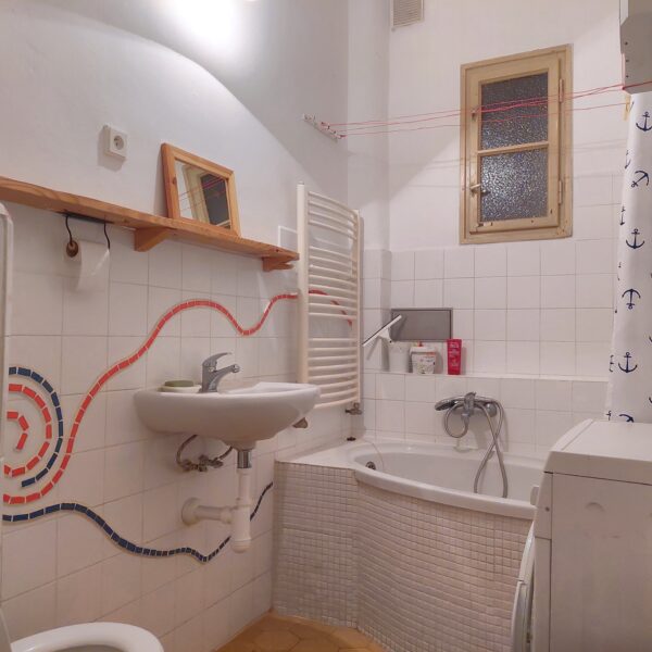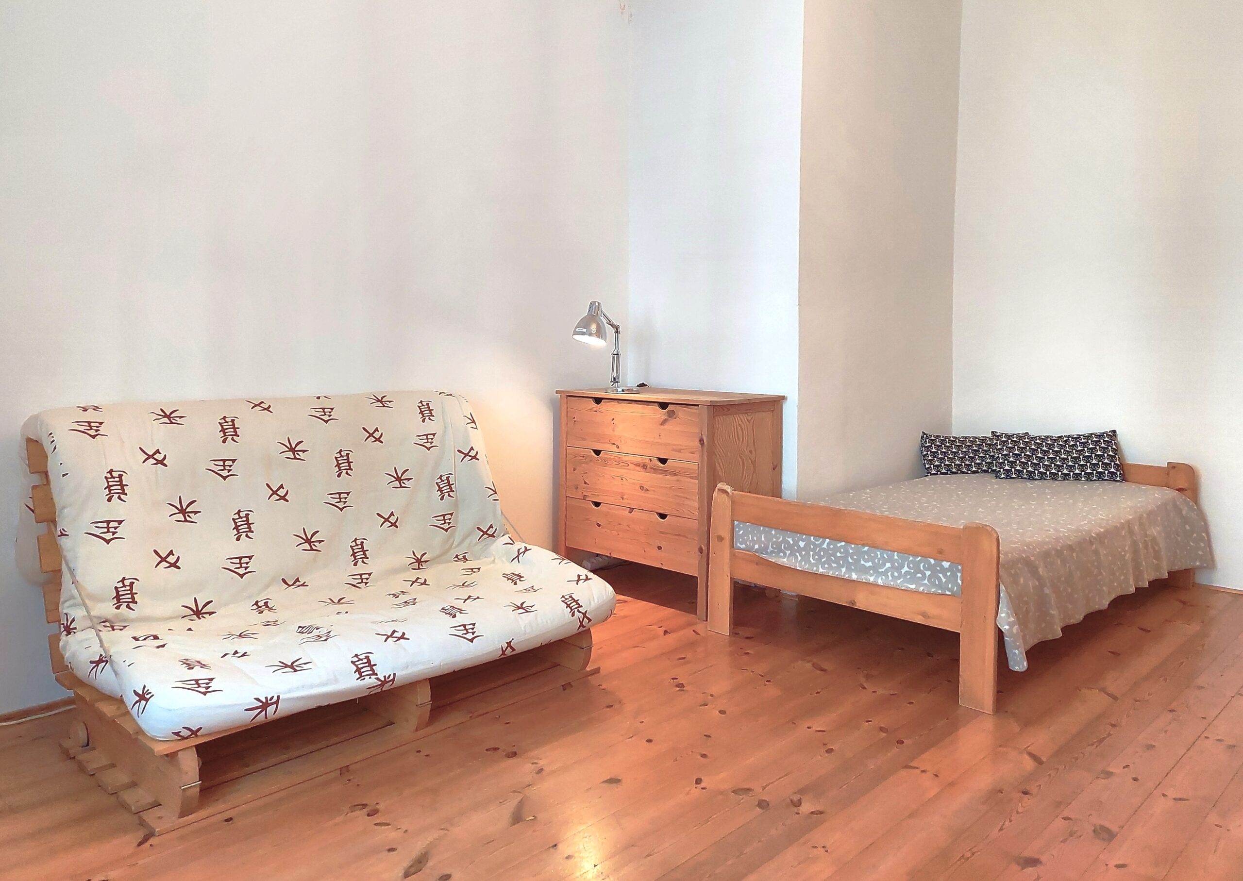 I offer nice two bedroom apartament – the rooms are separate – and small kitchen with bar seating. Toiled and washing mashine is in the bathroom. Heating by gas boiler, solid wooden floors, shabby chic retro furniture. Ground floor, windows to a side street. For two people maximum.