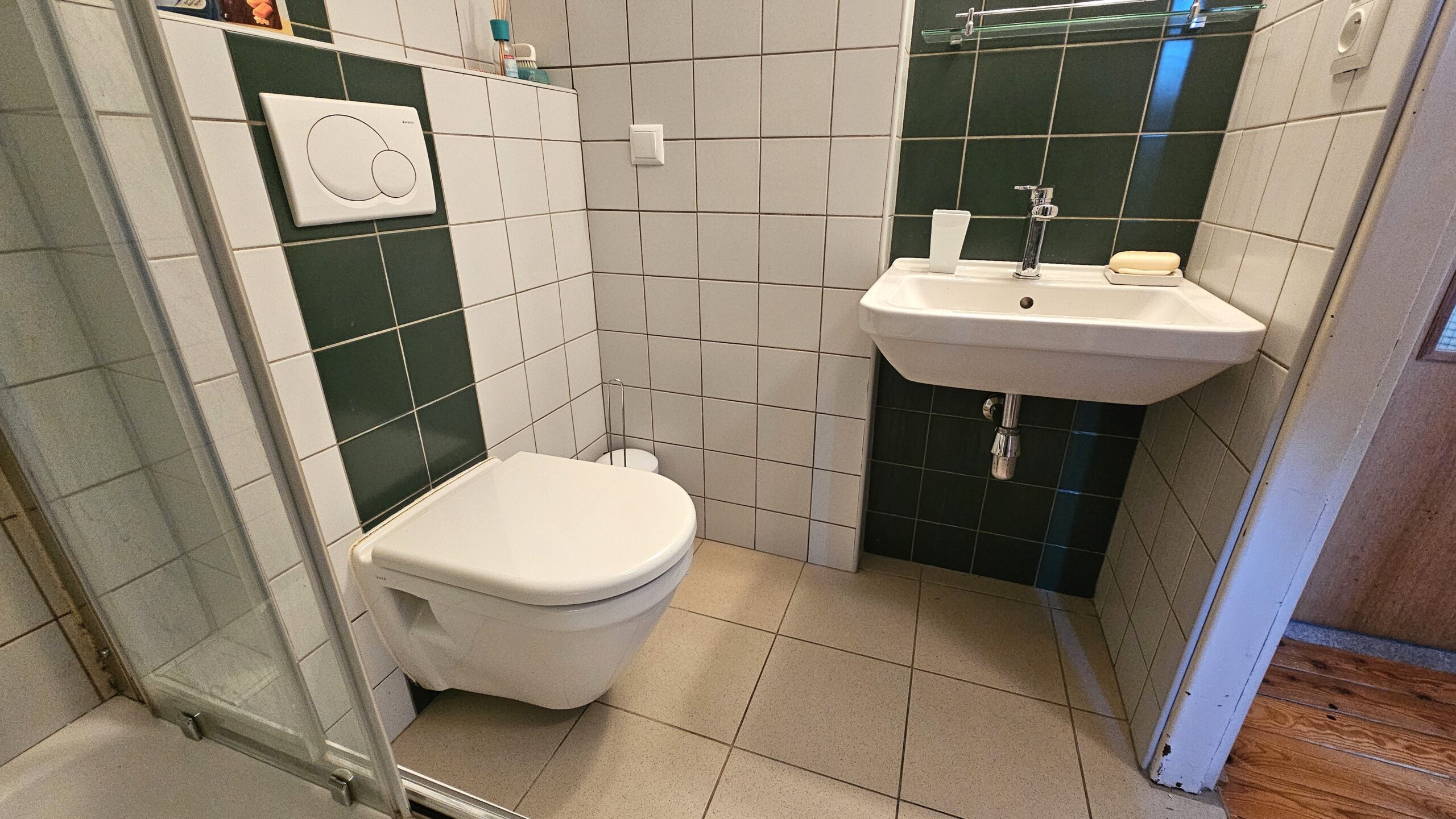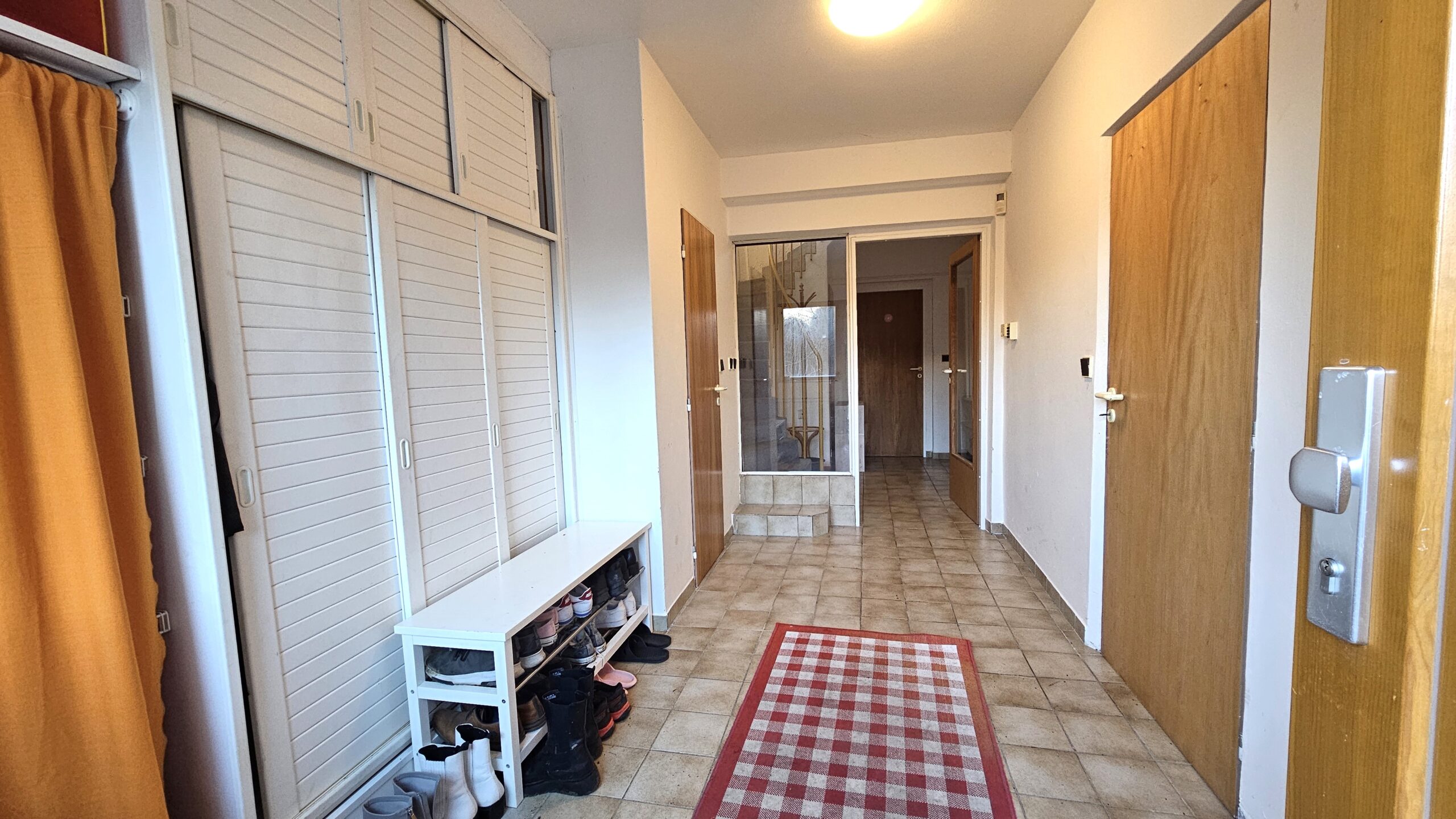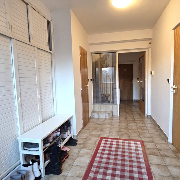 V přízemí vstoupíte do prostorné předsíně, u které se nachází první WC, vstup do garáže, chodba ke garsoniéře (v té je vlastní kuchyňský kout, koupelna a šatna) a prádelna s kotelnou v jednom. Z garsoniéry je přímý výstup na zahradu.
