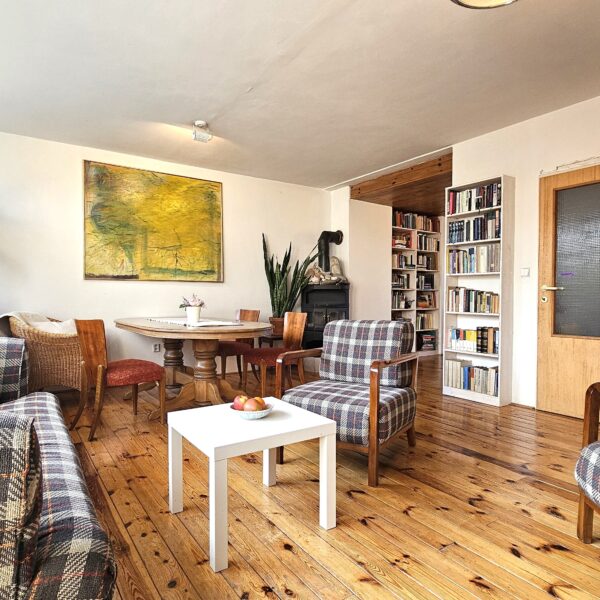 Nabízím dlouhodobý pronájem dvougeneračního řadového domu na Barrandově. Celkově se jedná o 5+1 a samostatnou garsoniéru. V domě jsou tři koupelny plus jedno samostatné WC. Garáž po dohodě. Dům je zařízený. Vynikající PENB B – kompletně zatepleno, trojitá okna, nové terasy, nový světlík.